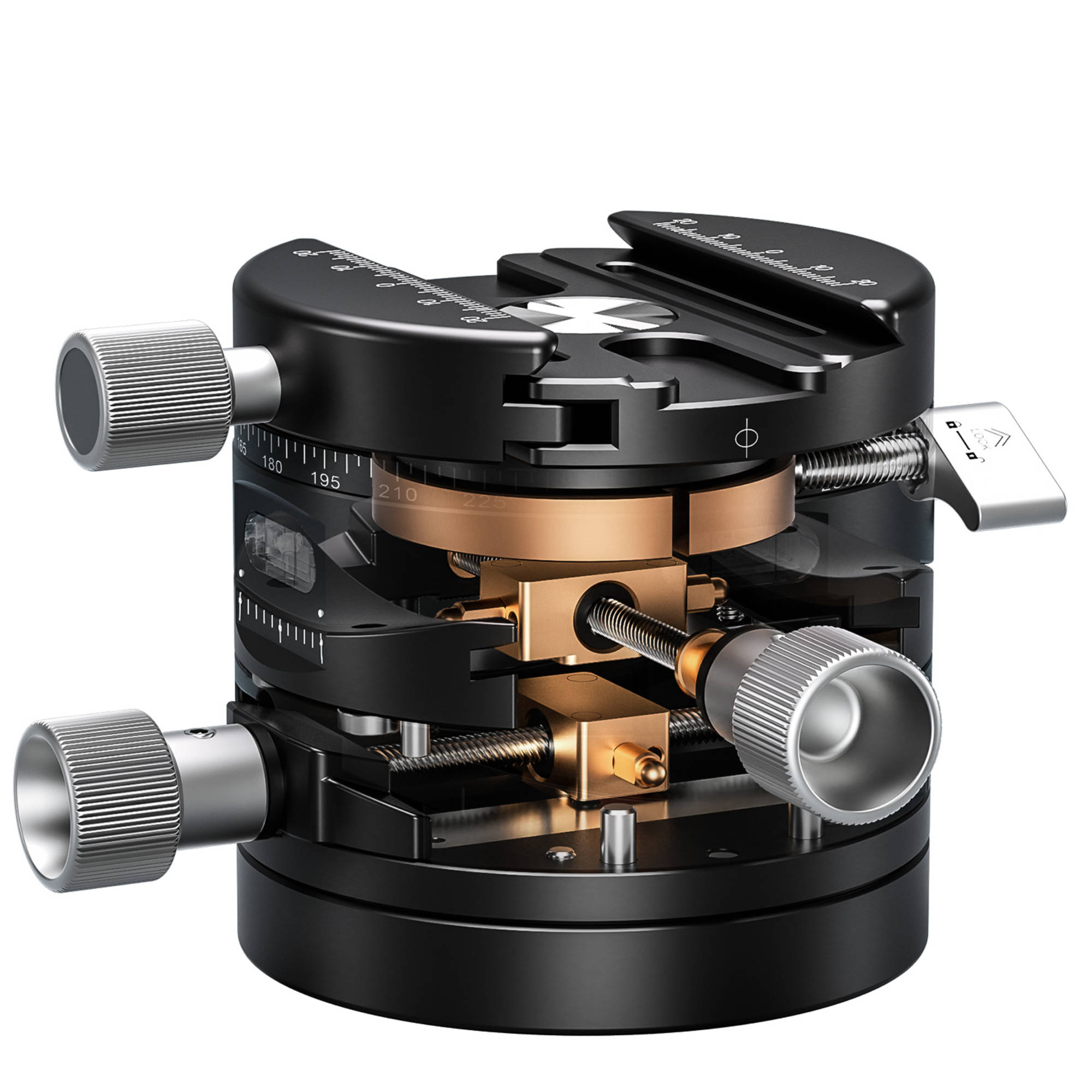 With the dual-axis panorama adjustment, users can take full advantage of ±15° adjustments for fine-tuning the horizontal, tilt, and vertical axes. The panning base provides 360° rotation for full panoramic shots, while the finely calibrated gears ensure that even the smallest adjustments are smooth and precise.