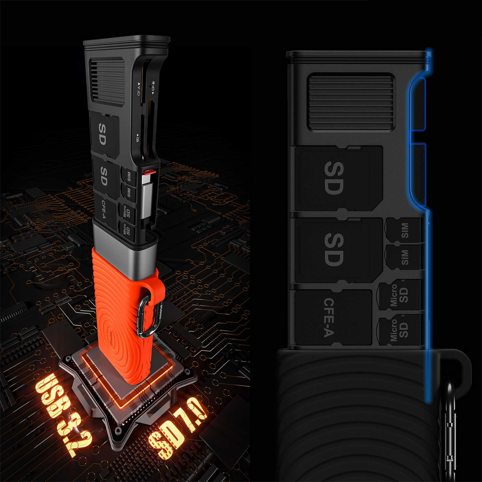 - 8 + 3 slot design for SD, TF, SIM, and CFexpress card storage
