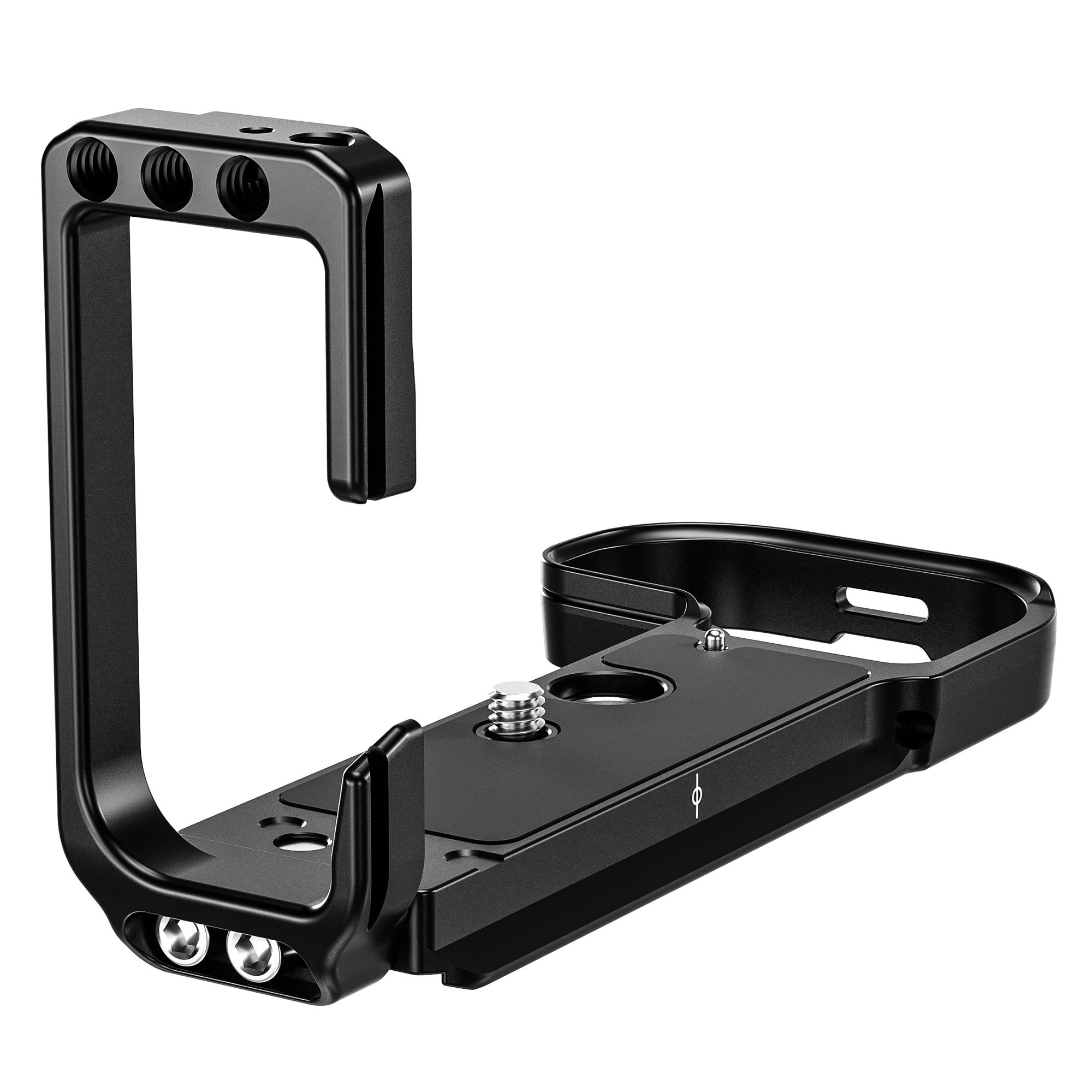 - Dual Mounting Surfaces: The L-bracket provides two mounting surfaces in the shape of an ‘L.’ One surface mounts on the camera’s bottom, while the other mounts on the left side. This additional mounting option allows for fast switching between orientations, saving time and hassle during shoots.