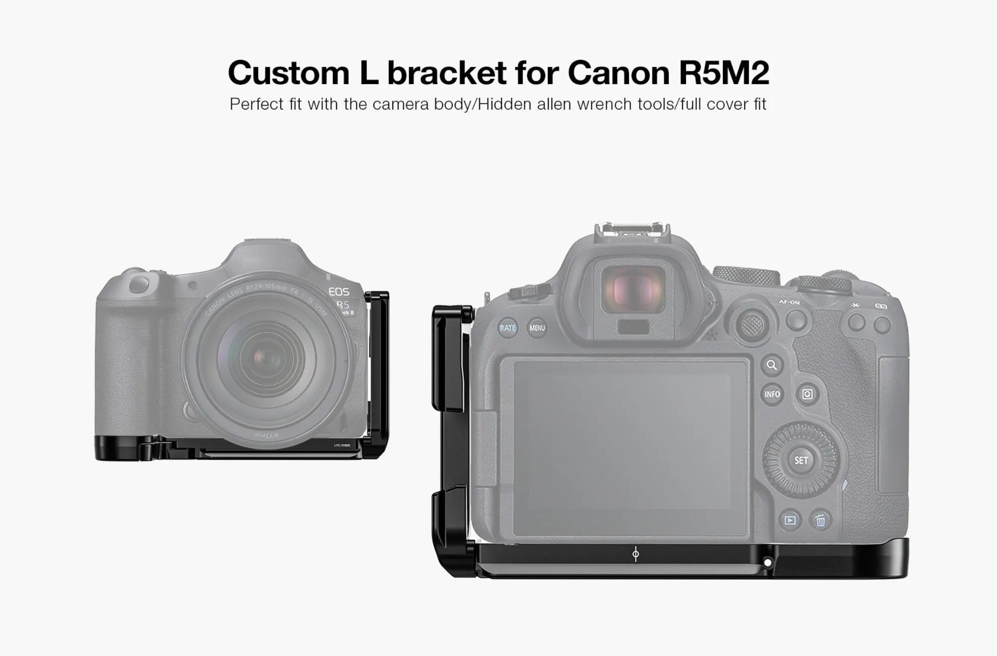 - Custom Fit Design: This L-bracket is meticulously crafted to fit the Canon R5 Mark II bodies. The plate contours precisely to the camera body, ensuring a secure fit that prevents any unwanted twisting or movement.