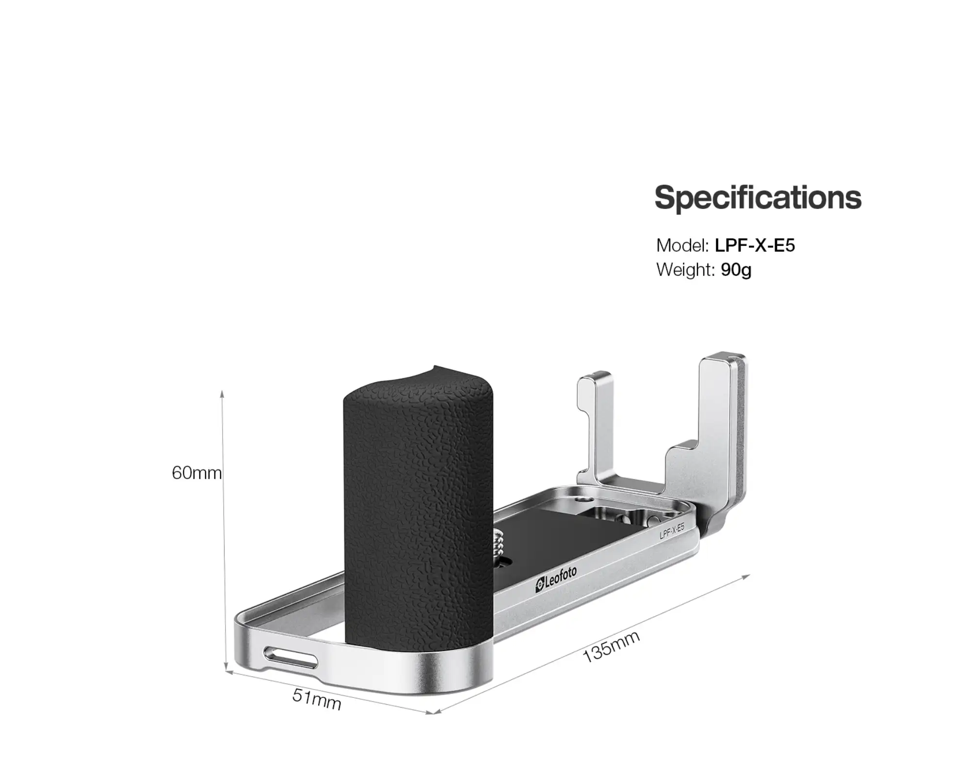 The LPF-X-E5 is uniquely shaped to perfectly match the contours of the Fujifilm X-E5, offering complete coverage and a secure, play-free mount. The base and vertical plates are designed to align precisely with the camera’s tripod socket, ensuring: