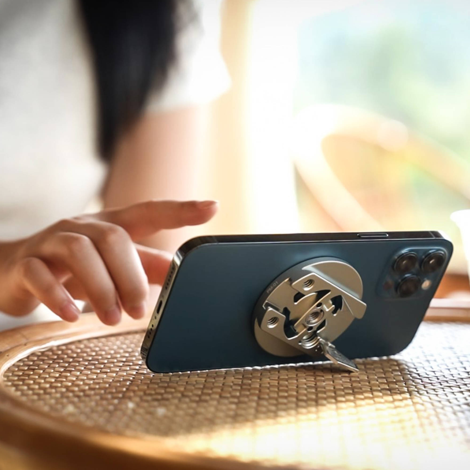 - When used on desktops, the PM-01 can be rotated to achieve the perfect viewing angle, enhancing the usability and comfort of your smartphone experience.