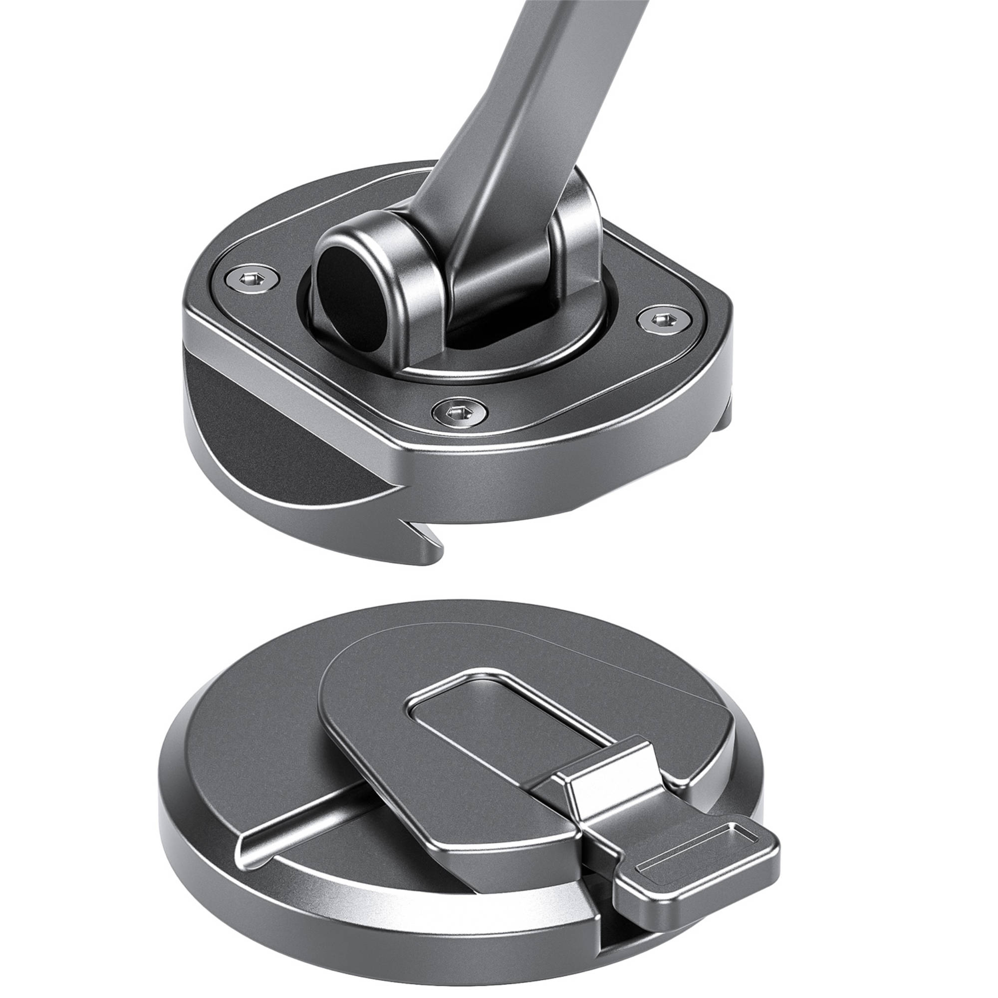 - Dual Base Design: Includes two bases – a quick-release adhesive base for dashboard mounting and an Arca-Swiss compatible base for camera tripods, providing versatile use across setups.