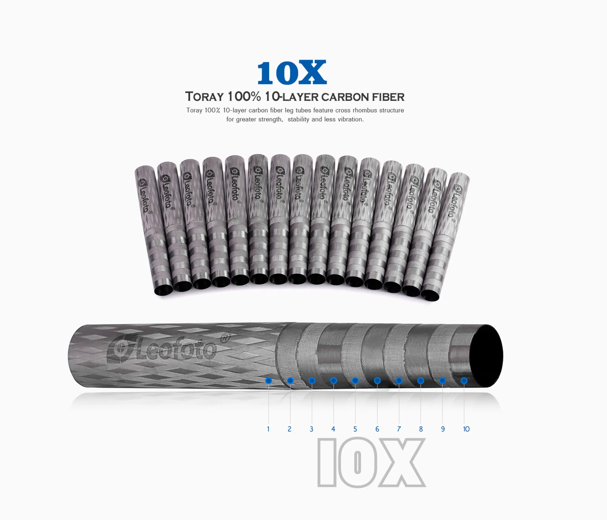 - Built with 10 layers of Toray 100% Carbon Fiber, the SO-282C ensures maximum strength and rigidity while remaining lightweight. The cross-rhombus structure of the carbon fiber legs enhances durability and minimizes vibration, making it perfect for high-impact environments like competitive shooting or wildlife photography.