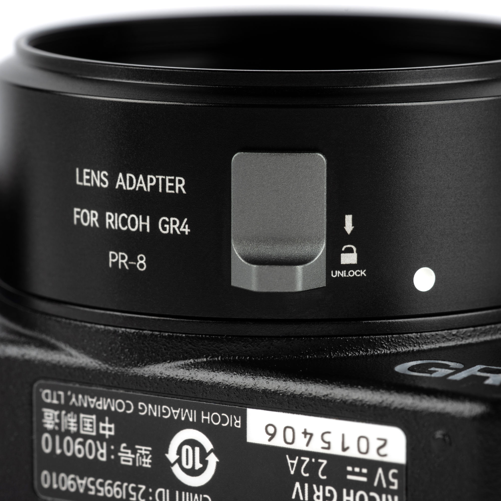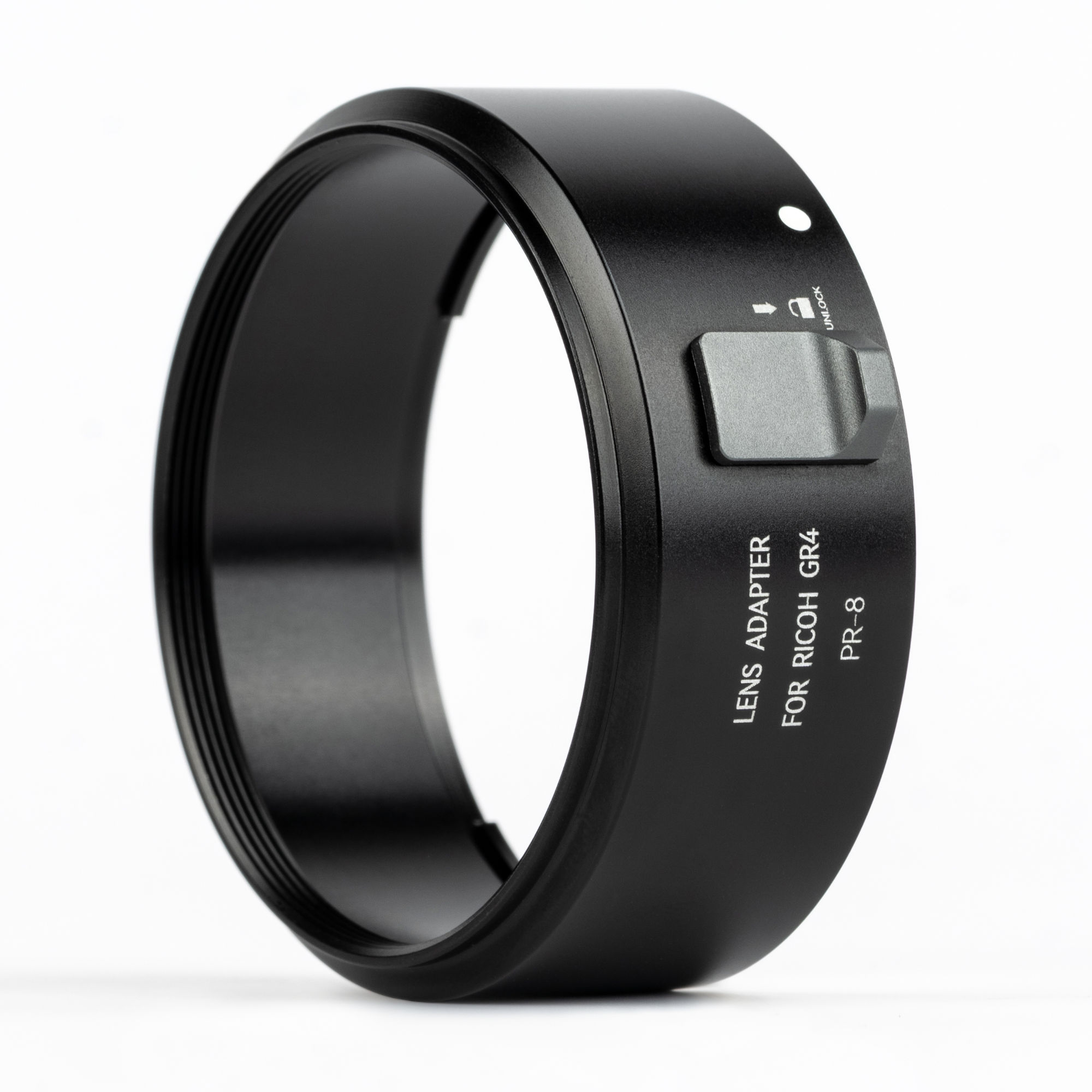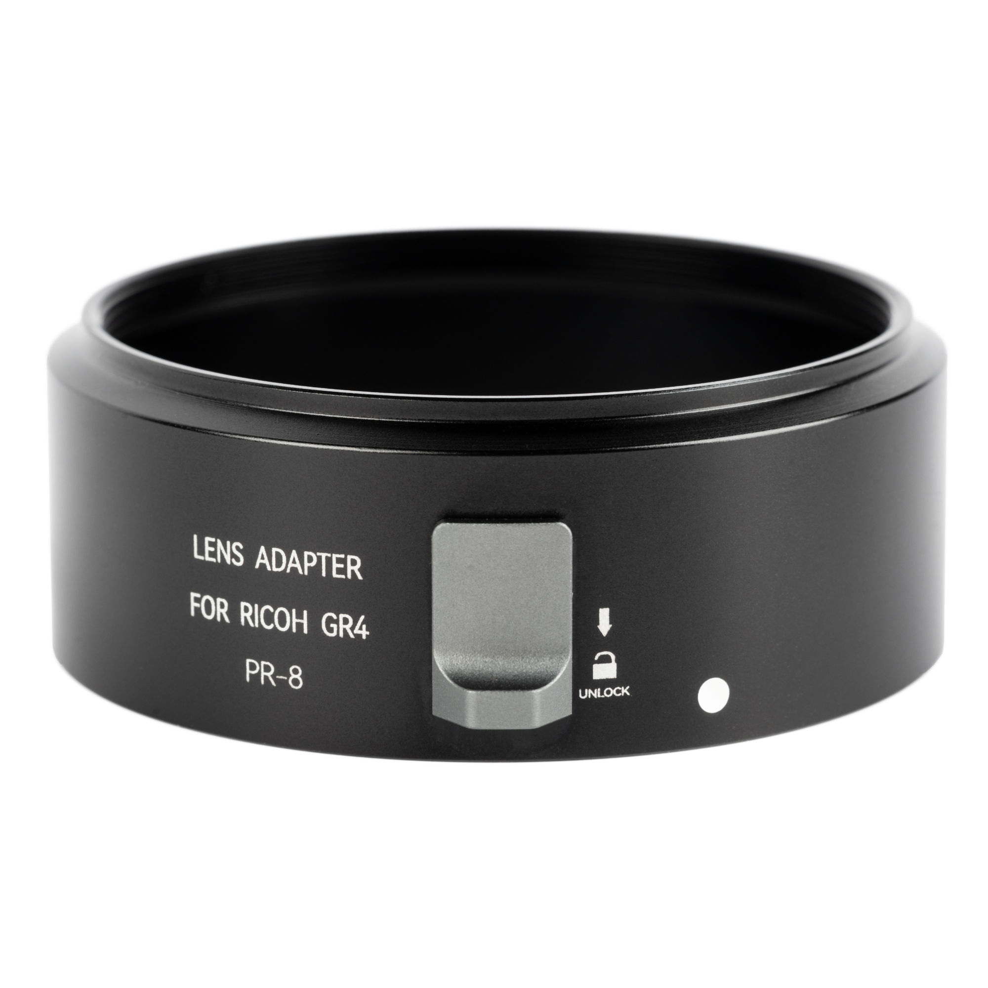 Installation is fast, intuitive, and tool-free, thanks to a clearly marked alignment point that guides the adapter smoothly into place. It attaches or removes in seconds, making it ideal for both everyday shooting and travel. The adapter is also fully compatible with the NiSi PR-5 lens cap for Ricoh GR IV, ensuring seamless protection even when the adapter remains mounted.