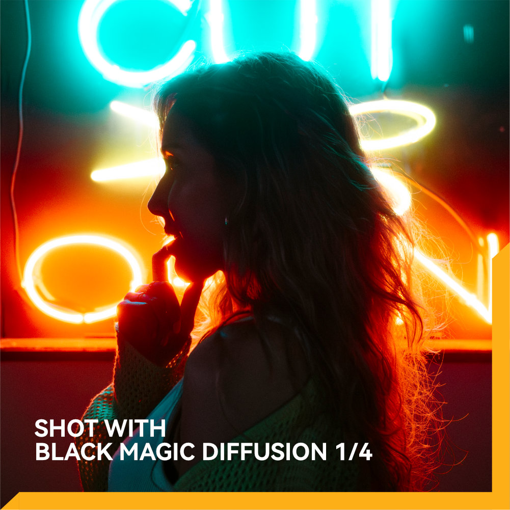 While both filters create cinematic softness, their effects are distinct. Black Mist filters produce a smoother, more noticeable glow in the highlights, often reducing contrast more heavily while preserving slightly more detail in skin texture. In contrast, Black Magic Diffusion filters deliver a cleaner bloom with sharper edges, smoother skin rendering, and finer overall texture, making them ideal when you want a polished look without excessive “mist.” Black Mist gives a dreamier, lower-contrast atmosphere, whereas Black Magic Diffusion maintains more detail and contrast for a refined cinematic feel