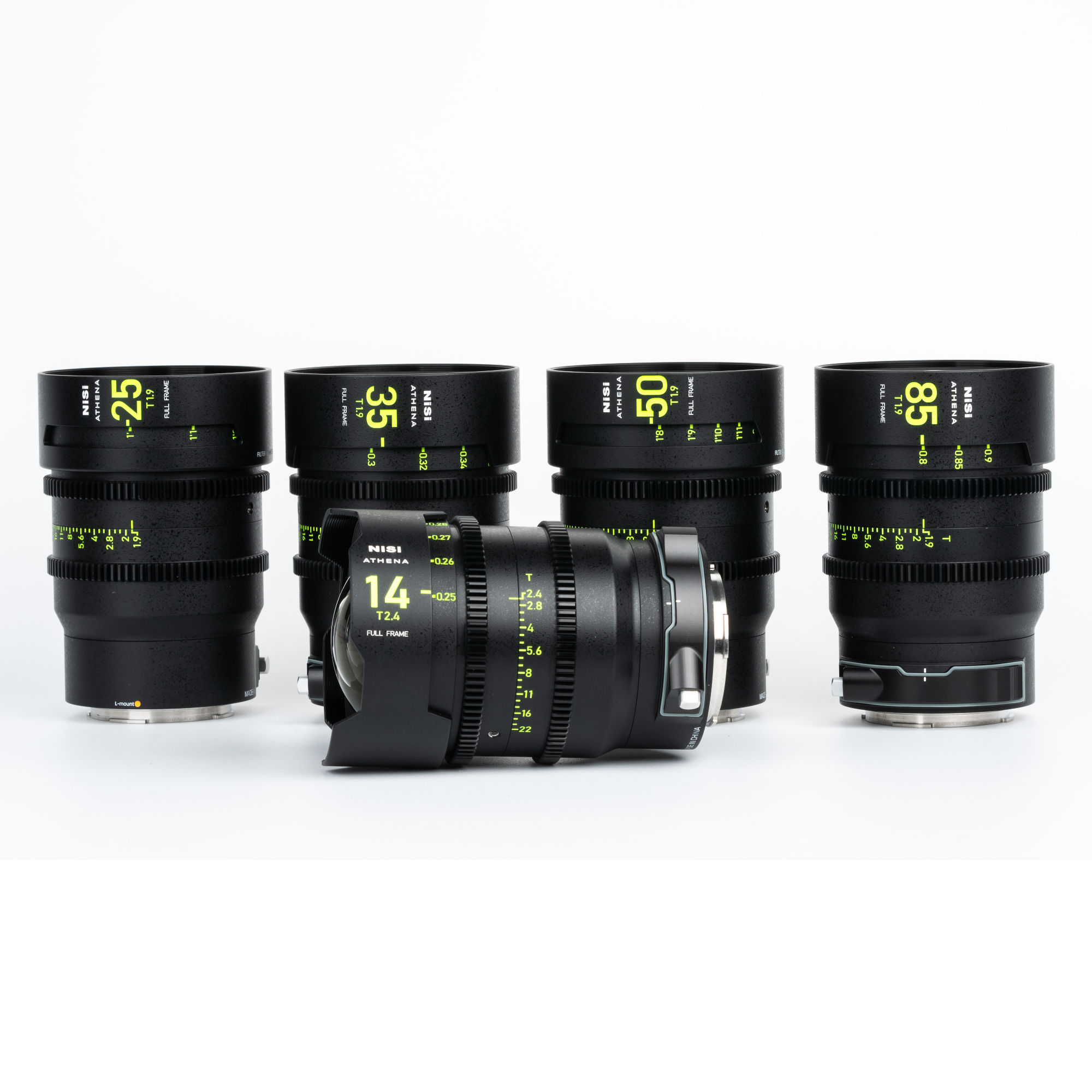 NiSi ATHENA PRIME Full Frame Cinema Lens Kit with 5 Lenses 14mm T2.4, 25mm T1.9, 35mm T1.9, 50mm T1.9, 85mm T1.9 + Hard Case (L Mount)