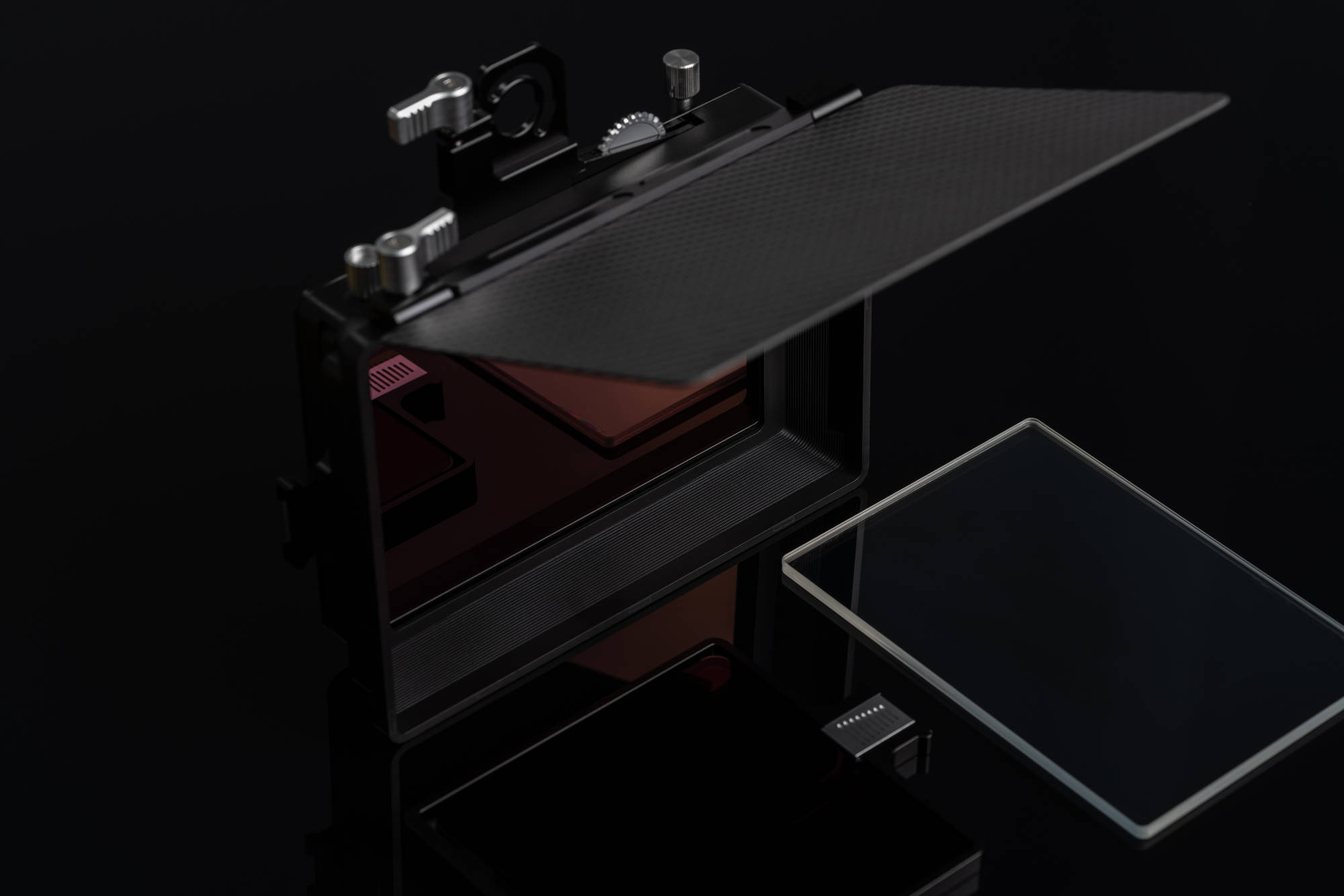 The C5 is built to last using Aluminium, Composite Plastic and Carbon Fibre to protect the filters it holds while keeping the weight down. It features a clamp-on style with adapter rings to suit lenses with filter threads and cinema lenses with a 95mm outer diameter. The deep filter depth blocks glare and places the filter as close to the lens as possible to ensure no vignetting on lenses down to 15mm full frame equivalent. The Carbon Fiber top flag also reduces glare from any overhead light source. The holder has slots in the side to reduce wind resistance, and the 350g weight makes it perfect for aerial platforms and gimbal use mounted on vehicles.