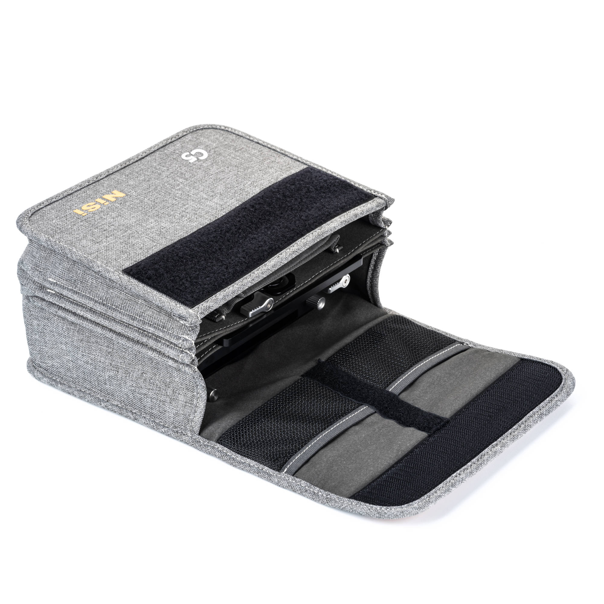 The C5 comes packaged in a pouch that will hold all accessories that the C5 comes with to make it ready to use on set with various lenses. The holder incorporates a top entry 4×4 slot for square filters in a tray or NiSi’s Rotating filters designed for the C5. The filter tray can hold 2mm or 4mm thick filters. There is a side entry 4×5.65 filter slot to suit all 4×5.65 filters from ND’s to Grads, Mist, Polarisers, and more.