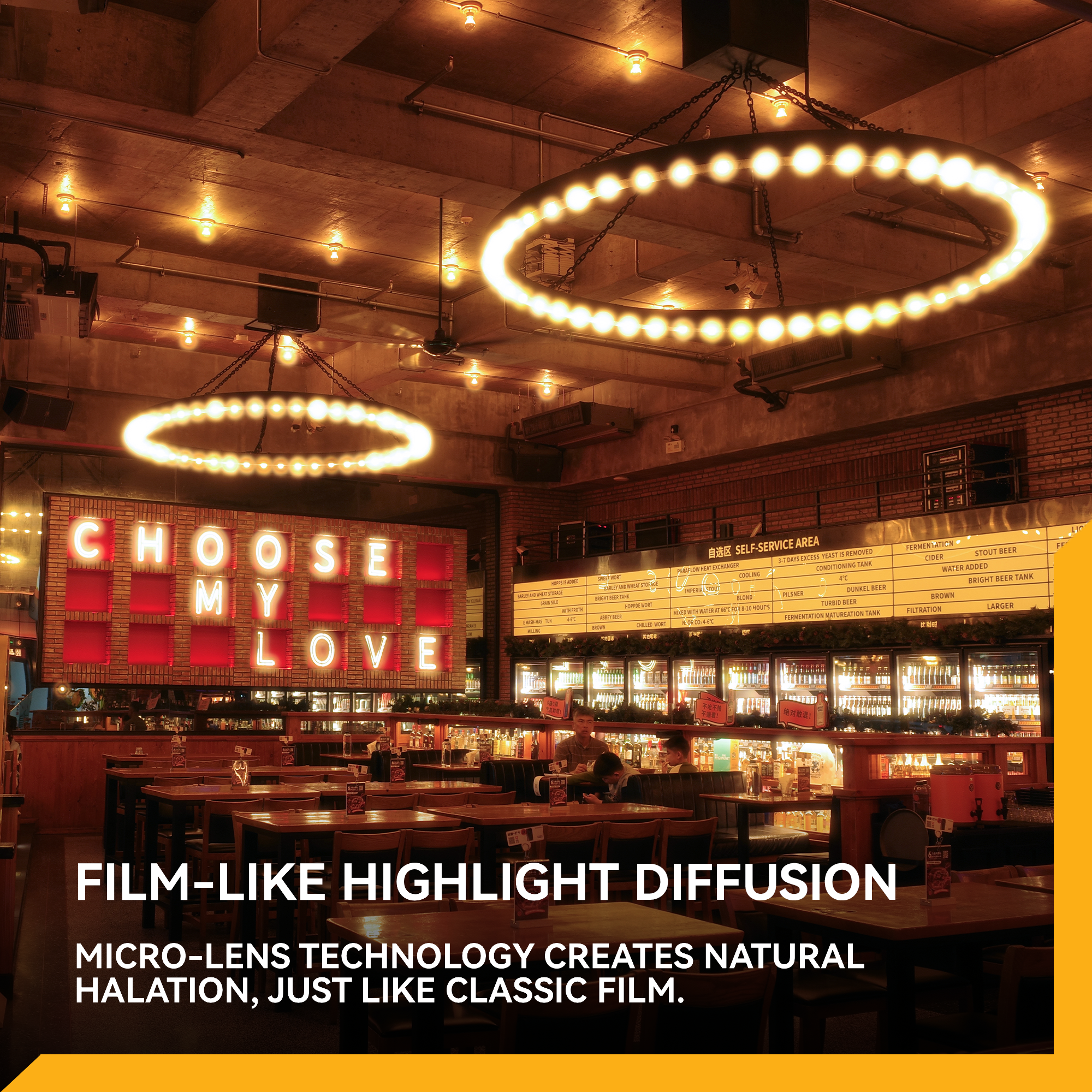 - Film-Inspired Highlight Diffusion – Cinema-grade micro-lens technology diffuses bright areas with a mellow, film-like glow, recreating the natural halation of classic film for photos and videos.