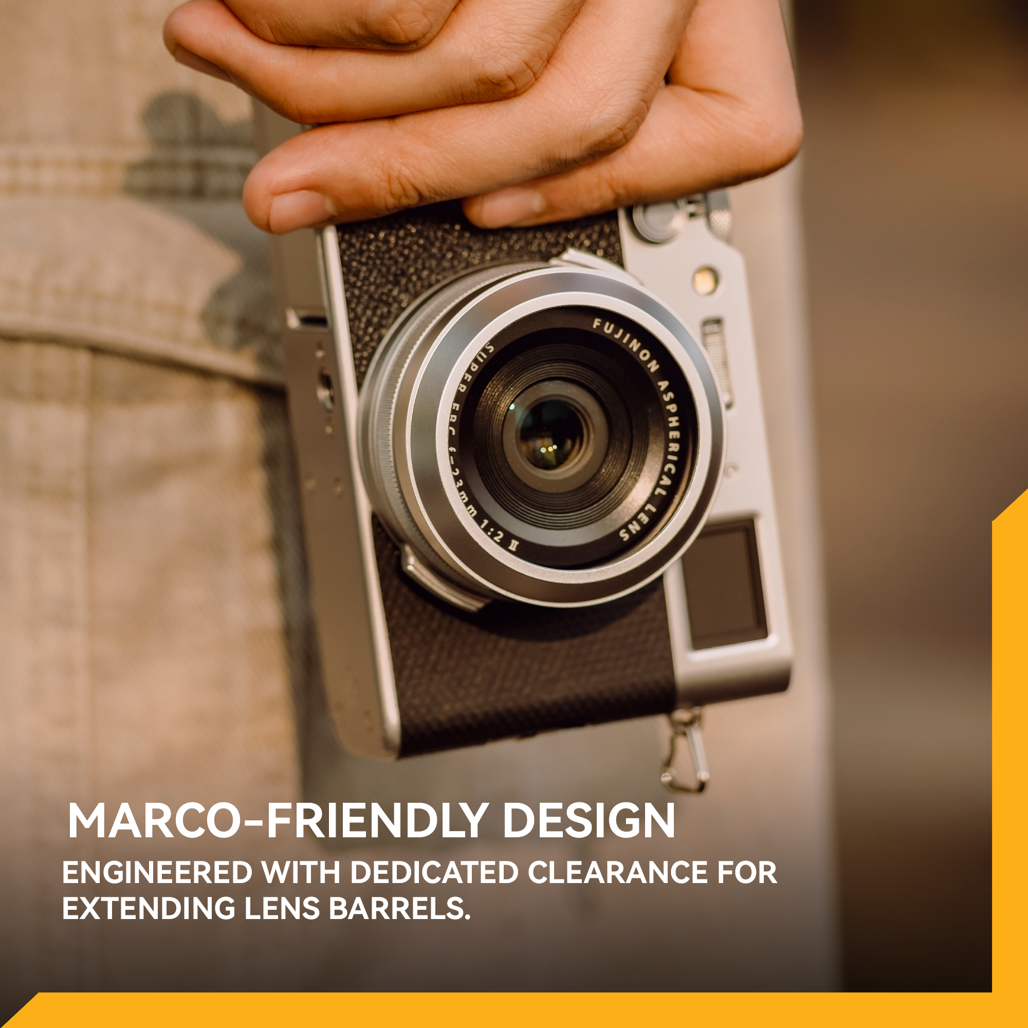 - Simple, Direct Attachment – One-piece design maintains the camera’s compact profile with a seamless, integrated fit that preserves the iconic look of the Fujifilm X100.