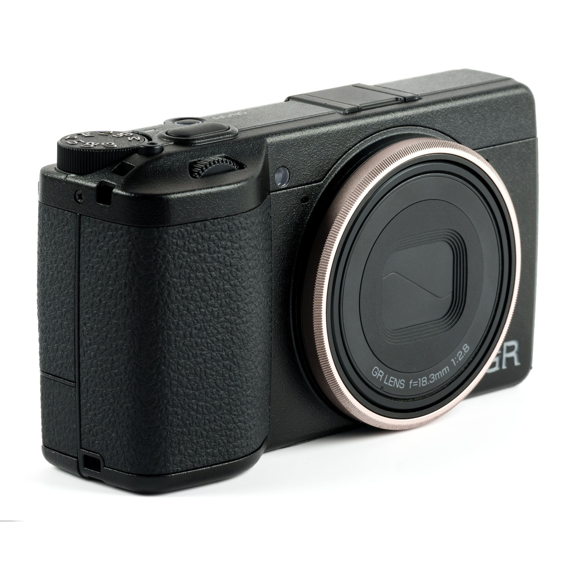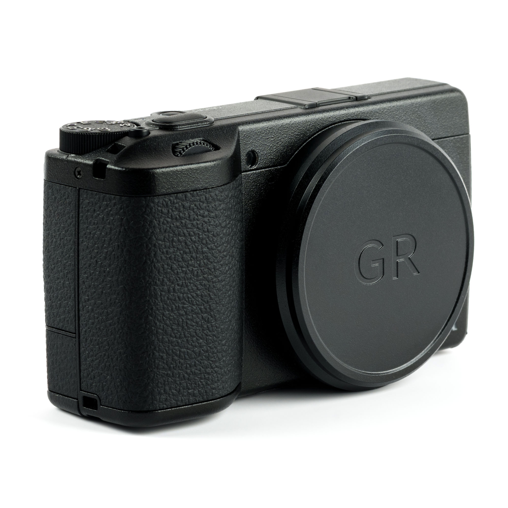 A subtle, unpainted “GR” logo keeps attention on the camera while maintaining a sleek, professional appearance.