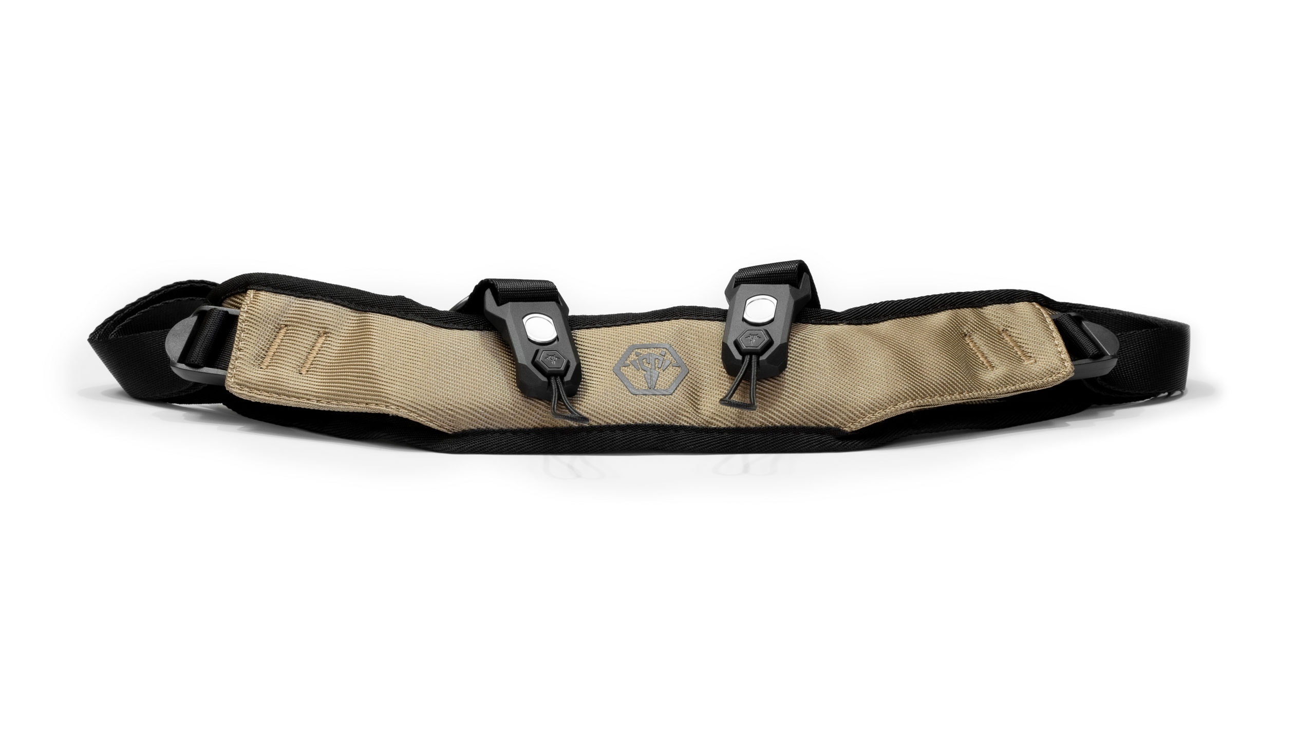 The PI Strap uses the included Squid Links, which are rapid-connect couplers so you can quickly and securely attach gear to a strap. A Squid Link consists of two parts. The receiver mechanism can be attached to a strap as wide as 25.4mm with a second eyelet for straps up to 10mm wide. The second part is a small lanyard attached to a fob that magnetically pairs to the receiver and locks into place. The lanyard can be threaded to any eyelet it can pass through on a camera, binoculars, phone case, or anything you want to keep at hand yet quickly have access to. The release switch opens the channel, but the lanyard will not release until you give it a good tug upwards, so no surprises.