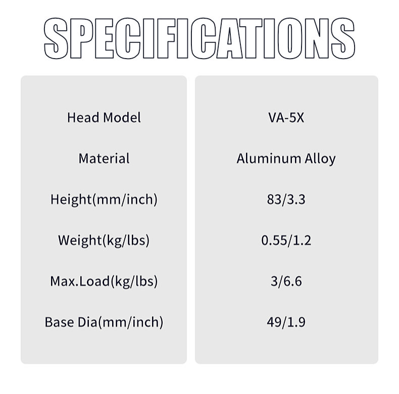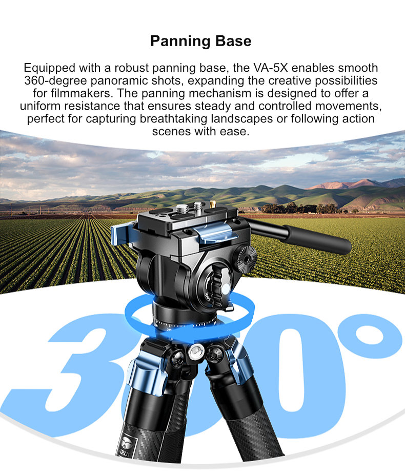 Panning Base: Equipped with a robust panning base, the VA-5X enables smooth 360-degree panoramic shots, expanding the creative possibilities for filmmakers. The panning mechanism is designed to offer a uniform resistance that ensures steady and controlled movements, perfect for capturing breathtaking landscapes or following action scenes with ease.