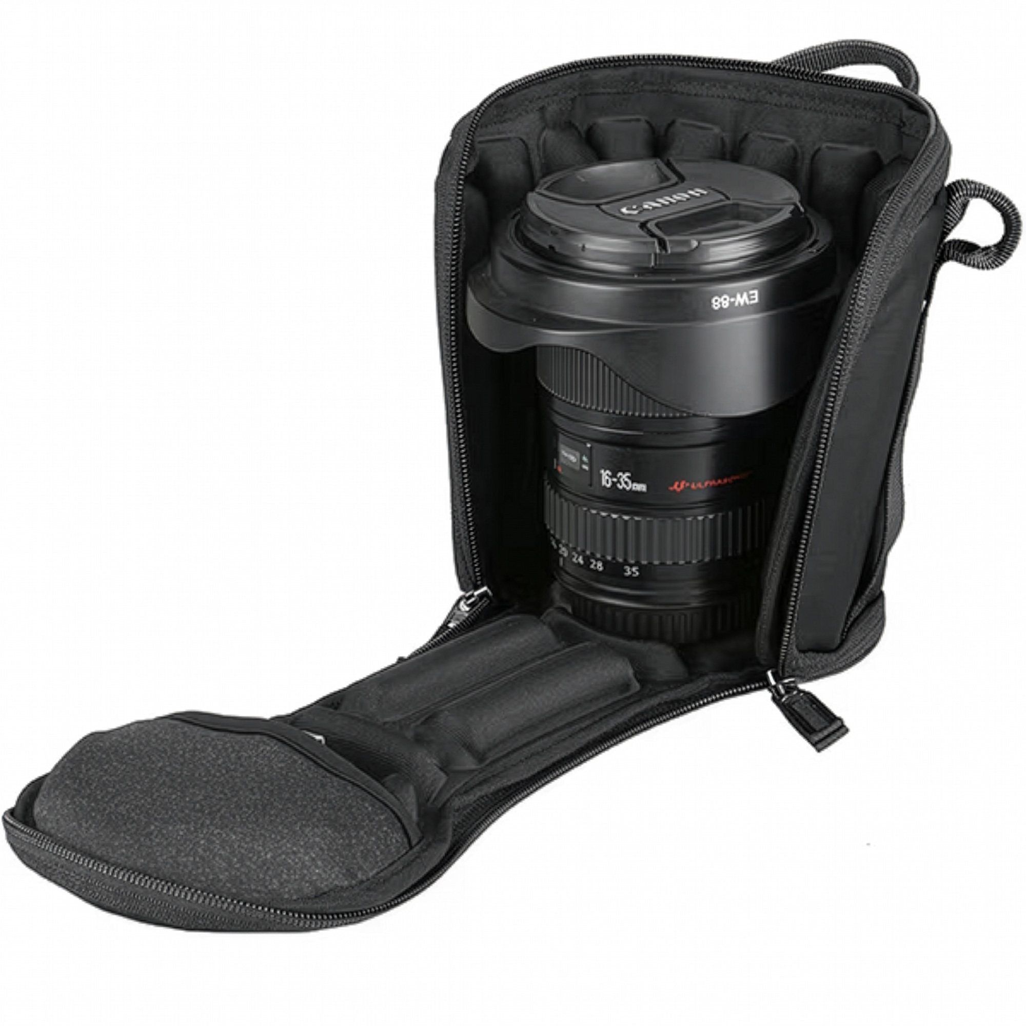 A premium YKK double zipper gives smooth, reliable access and allows you to remove the lens vertically or horizontally, making it easy to work whether your kit is packed tight or you’re shooting on the move. For carry flexibility, the Small case supports three convenient options—use the included shoulder strap, attach it via the belt loop, or grab it quickly with the top handle. Ideal for everyday prime lenses and compact zooms, the Small size is a smart, lightweight way to keep your glass protected anywhere from city commutes to location shoots.